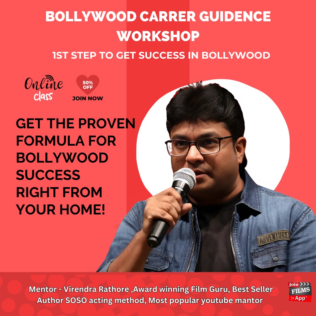 The Bollywood Career Guidance Workshop is designed to help you break into the film industry and achieve your dreams. Learn directly from Virendra Rathore, an award-winning mentor with years of experience. Rathore.